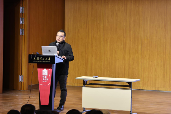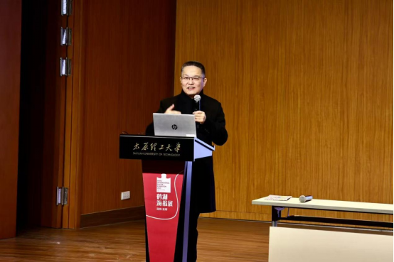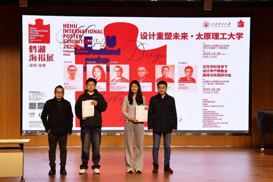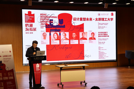 10月28日上午,“设计重塑未来 · 太原理工大学鹤湖国际海报展2025巡讲暨学术研讨会”在我院报告厅和会议室隆重启幕。本次活动邀请著名设计师、中国出版协会书籍设计艺术委员会副秘书长、鹤湖国际海报展执行主席韩湛宁先生,中国国际海报双年展执行主席、中国美术学院视觉传播学院视觉传达设计系主任吴炜晨,以及山西设计奖执行主席、中国包装联合会设计委员会全国常务委员李英伟,及省内兄弟院校的领导和专家出席。研讨会由太原理工大学建筑与艺术学院设计系主任范伟老师主持,太原理工大学建筑与艺术学院院长史文正致欢迎辞,对各位专家学者的到来表示热烈欢迎。参加研讨会的还有学院师生,报告厅内座无虚席,学术氛围浓厚。