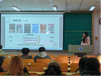 宣讲会上,杨岚老师结合多年指导经验,围绕赛事规则、赛道设置与获奖作品进行了系统讲解。她详细介绍了非命题、公益命题及创新创业等赛道的申报要求,并通过往年优秀案例,重点解析了作品在选题、创意、排版、完整度等方面的评分要点,为同学们提供了专业的备赛指导。