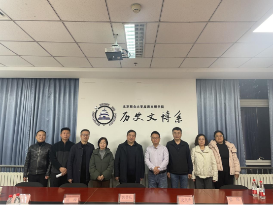 18日下午,调研组一行赴北京联合大学应用文理学院进行了调研学习。座谈会前,调研组一行参观了应用文理学院历史文博系实验室,与老师们进行了现场交流。应用文理学院院长张景秋等出席座谈会。座谈会上,郭普庆书记简要介绍了我院的基本情况及本次调研学习的目的。张景秋院长详细介绍了北京联合大学申报文物专业博士点的整个过程及心得体会,并结合我院文物专业建设情况给予了很多宝贵建议和意见。建议我院博士点申报要依托山西地上地下文物资源禀赋,发挥学校理工科优势,突出学科建设特色,做好校企合作,跨学科组建团队,组织好专家论证工作。